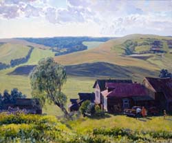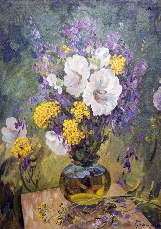 Творчество Г.П.Гришина развивается под эгидой чёткого понимания конструкции изображаемого, фактура колорита и образа - переживания.